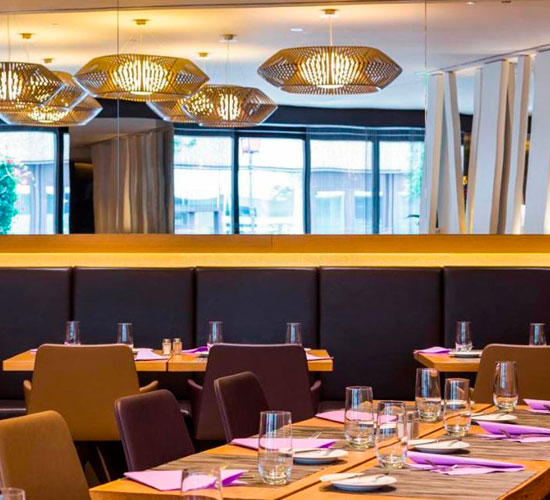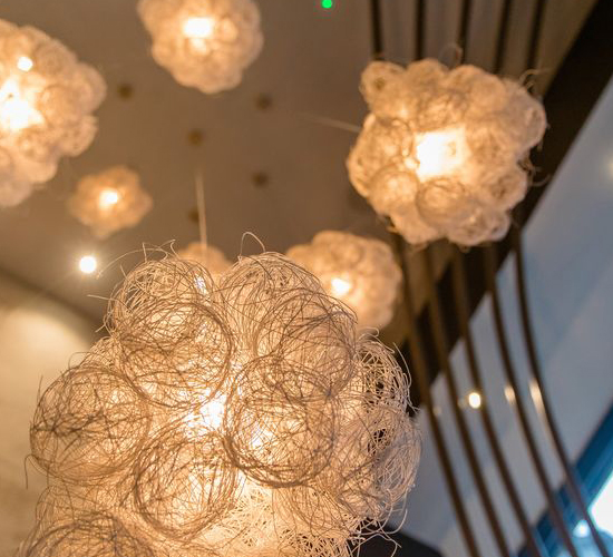 The elegance of our handmade Ballet composition of pendant lights illuminates an area of the prestigious AC Hotel in Salt Lake Citi, USA.