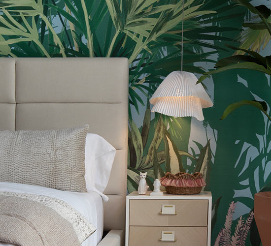 Tropical ambience and our organically designed Tempo Vivace lamp to provide light in the master bedroom of this private residence in the USA.