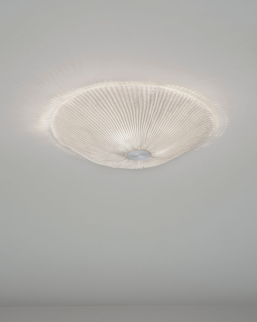 Nuestro enfoque orgánico se traduce también en una conversación entre dos corrientes arquitectónicas elementales: la arquitectura orgánica y el racionalismo. La primera, impulsada por la idea de diseñar en sintonía con el entorno, aboga por edificios que se integren en su contexto natural, en los que la línea entre lo construido y lo orgánico se difumina. Inspirados por este principio, en a·emotional light buscamos crear piezas que no dominen el espacio, sino que lo complementen. Cada lámpara es un tributo a las formas irregulares y a la sensación de calma que provoca la naturaleza, como un pequeño paisaje autónomo que ilumina y acompaña sin imponerse.