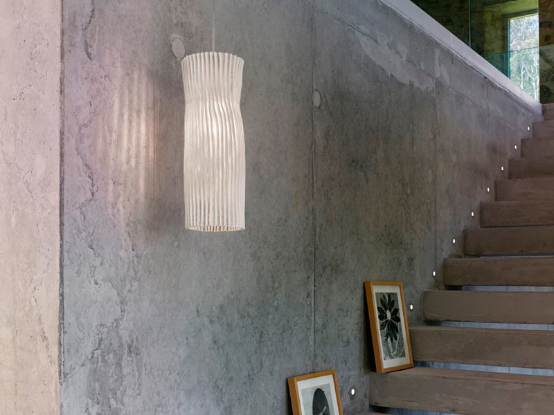 Brétema se inspira en la niebla gallega, una presencia etérea que suaviza el paisaje y lo envuelve de misterio. Es una luminaria que revela sutilmente, filtrando la luz con delicada delicadeza. Está disponible en tamaños Pequeño, Mediano y Grande.