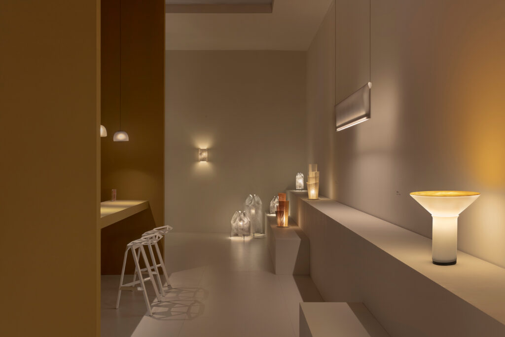 Umbra, diseñada por Isaac Piñeiro, por el contrario, profundiza en el juego de luces y sombras, ofreciendo una presencia audaz y escultórica y una lectura más introspectiva del espacio. Mediante geometrías simples y juegos de claroscuros, ofrece una luz ambiental que genera conjuntos a través de volúmenes y proyecciones sobre superficies.