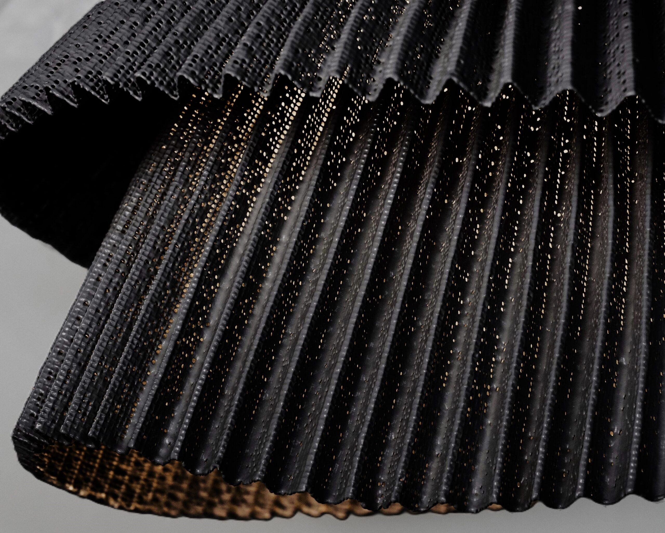 The 3D knit allows us to generate volumes and produce our lampshade without waste of material and without seams. It can be made with 100% recyclable materials.Polycarbonate