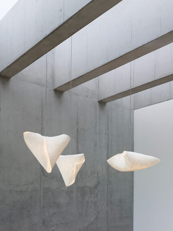 The Ballet collection arises from experimentation, giving rise to forms created from the overlapping or joining of its vertices, leaving freedom to the flexible nature of the material itself. Ballet Elancè is one of the pendant lamps in the collection designed by Héctor Serrano that represents a state in dance. Fluid, natural and asymmetrical volumes that make its forms change depending on the point of view. Pliè, Relevè, Elancè… A constant dance of light and shadows.