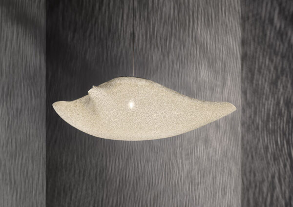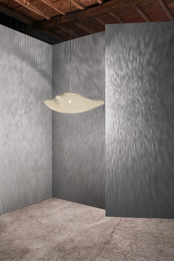 The Ballet collection arises from experimentation, giving rise to forms created from the overlapping or joining of its vertices, leaving freedom to the flexible nature of the material itself. Ballet plie is one of the pendant lamps in the collection designed by Héctor Serrano that represents a state in dance. Fluid, natural and asymmetrical volumes that make their shapes change depending on the point of view. Pliè, Relevè, Elancè a constant dance of light and shadows.