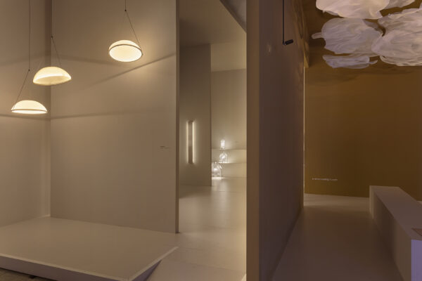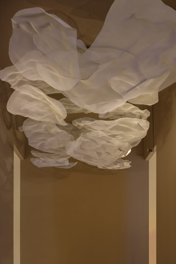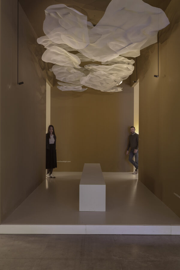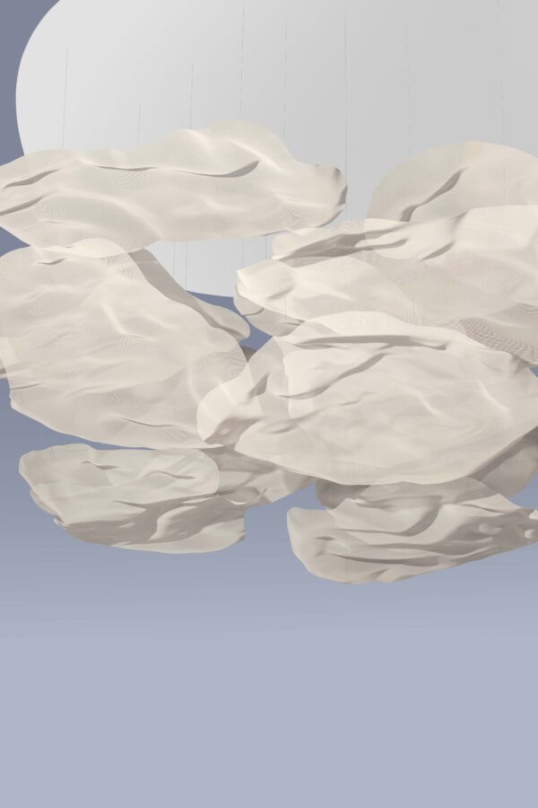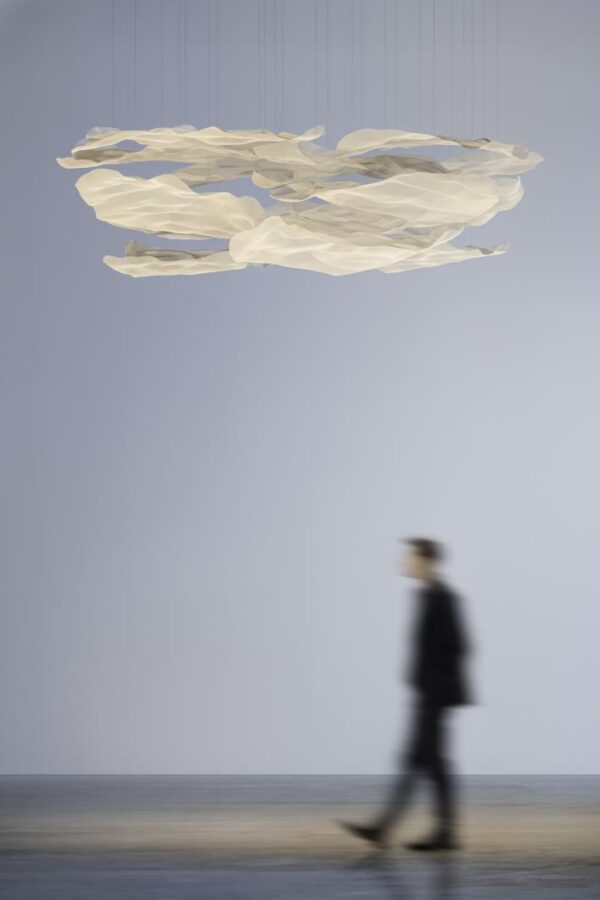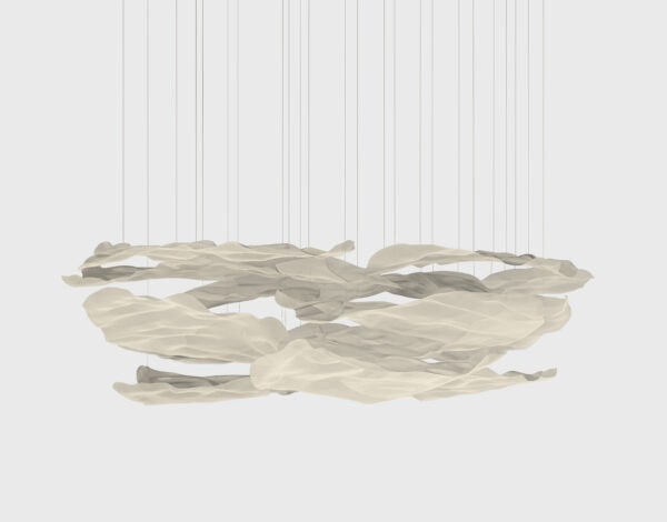 Inspired by the superimposition of clouds and the Atlantic sky, Brétema is a compositional system developed by a·emotional light design team. The interplay of overlapping layers and volumes, combined with a light that bathes the ensemble, allows for unlimited configurations with a high degree of expressiveness. The softness of the shapes and the visual lightness of Brétema bring a unique aesthetic emotion to any space.