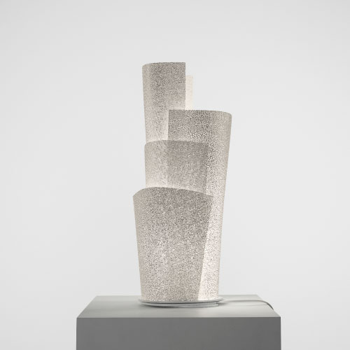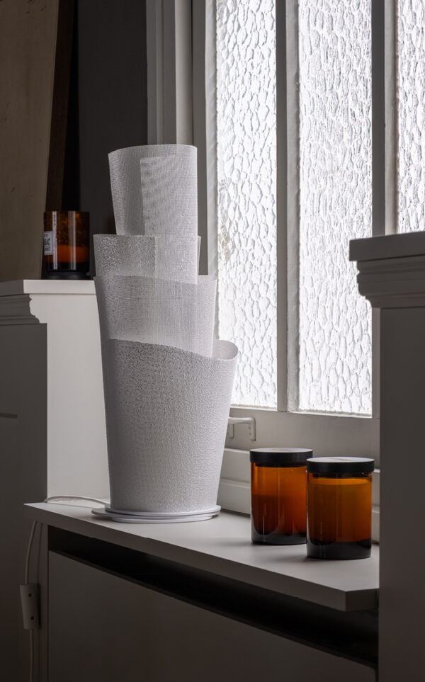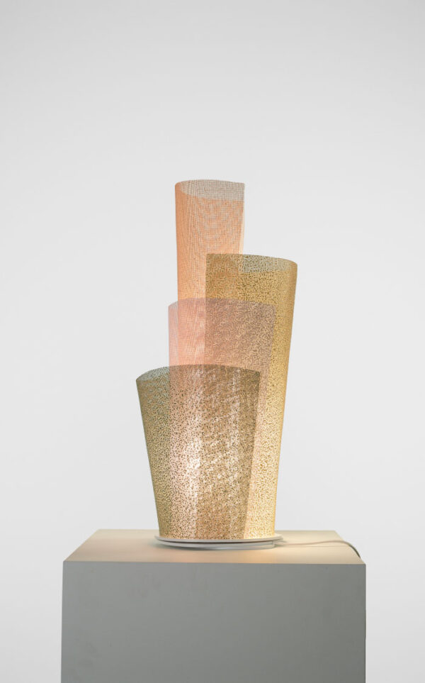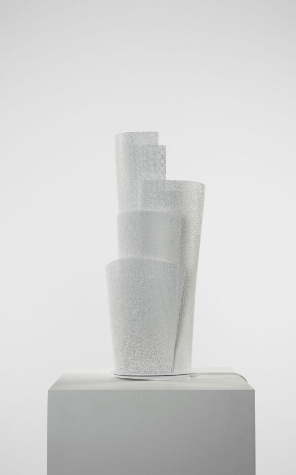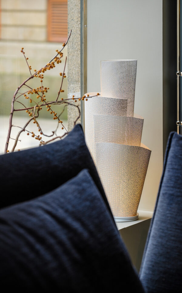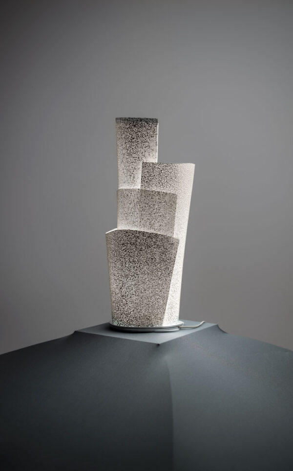 Blossom is a positive, aesthetic design. Hidden in the name of the new collection by Teresa Sapey + Partners lies a clear and natural message. The Blossom table lamp is an object that opens up, but is also delicate and fleeting. Its asymmetrical shape and color changes depending on the observer’s point of view, as do its weaves and wefts. Blossom is a design intended to produce elegant lighting effects in any type of environment.