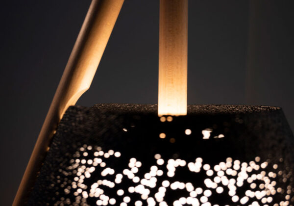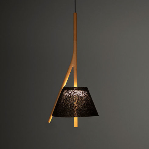 Cambo is the new design pendant lamp resulting from the collaboration with the cenlitrosmetrocadrado studio. The word Cambo (of Galician origin) refers to a wooden piece with a hook at one end, a handcrafted element present in the Galician tradition. With nature and our environment as inspiration, cenlitrosmetrocadrado has designed the Cambo system based on the natural growth of plants, the branching and bifurcation of trees. Ricardo Tubío and Xabier Rilo’s vision of the natural environment has given rise to a modular system that allows different designs to be configured with the same elements. Cambo is made of a beech wood structure with a water-based varnish that allows the material to be shown in its most natural form. With this peculiar structure, the painted stainless steel mesh is introduced into the lampshade which houses the integrated LED light source.