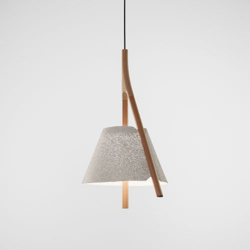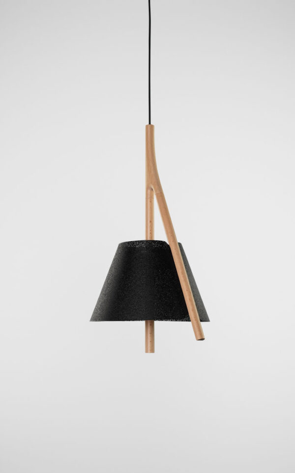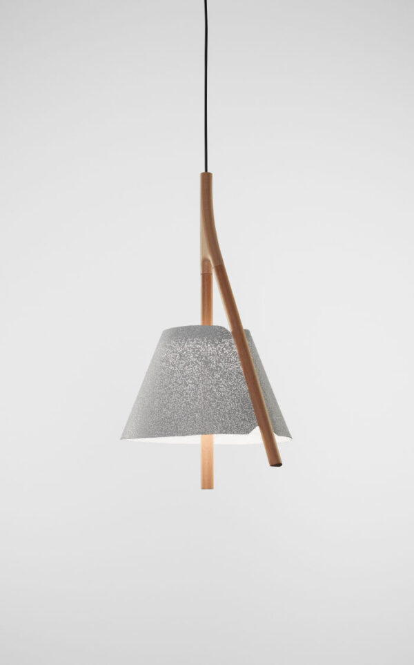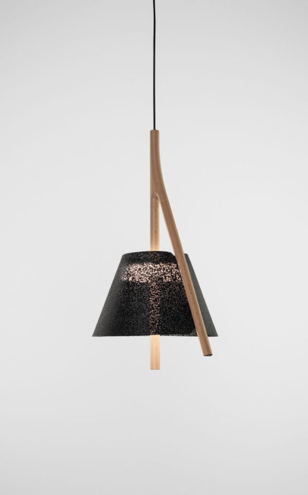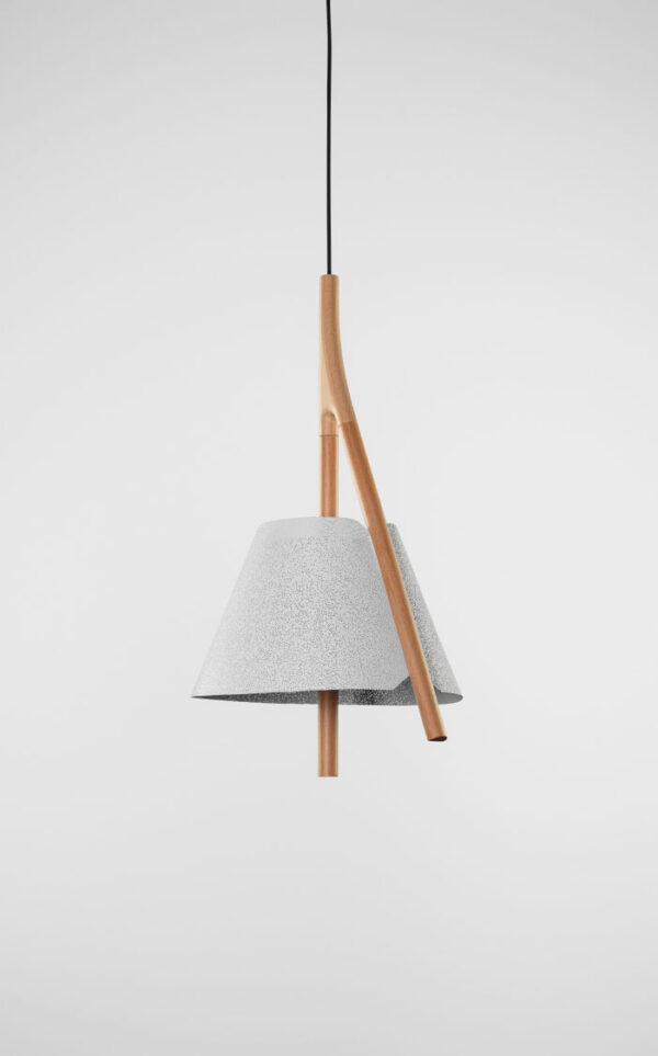 Cambo is the new design lamp resulting from the collaboration with the cenlitrosmetrocadrado studio. The word Cambo (of Galician origin) refers to a wooden piece with a hook at one end, a handcrafted element present in the Galician tradition. With nature and our environment as inspiration, cenlitrosmetrocadrado has designed the Cambo system based on the natural growth of plants, the branching and bifurcation of trees. Ricardo Tubío and Xabier Rilo’s vision of the natural environment has given rise to a modular system that allows different designs to be configured with the same elements. Cambo is made of a beech wood structure with a water-based varnish that allows the material to be shown in its most natural form. With this peculiar structure, the painted stainless steel mesh is introduced into the lampshade which houses the integrated LED light source.