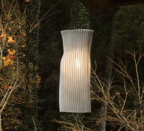 The Gea collection takes its name from the primordial goddess, mother earth. The stylized luminaires that compose it resemble upright female figures that defy verticality, wrapped in a ribbed veil of painted stainless steel mesh. The Gea pendant lamp designed by Arturo Álvarez emits a soft, enveloping light that is evenly distributed throughout the structure. The main piece of the collection, which won a Good Design Award in 2007, is the floor lamp, an elegant sculptural volume that blends into any environment, adding a note of distinction to the room.