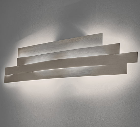 Li is a collection of wall lamps designed by Arturo Álvarez and made from pressed cellulose strips obtained through an environmentally friendly recycling process. This material, used in Japan for packaging since the 16th century for its great resistance, has been ideal for creating the curved lines of different dimensions that make up the lamp. The use of LED light contributes to reinforce the sustainability of the medium wall lamp Li, which, like gentle waves of the sea, bathes the walls with the subtle luminosity that peeks through its bands.