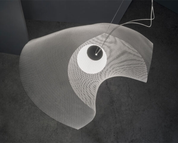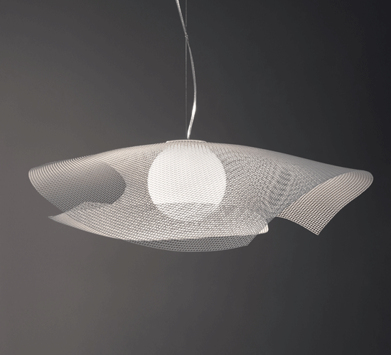 Mytilus is a pendant lamp available in two sizes. This collection designed by Arturo Álvarez is inspired by the bottom of the sea in motion, full of life, majestic waves that strongly drive the ocean currents. Waves, circular and organic shapes, a sinuous, mysterious and eternal world. Handmade in Spain, Mytilus is made of painted stainless steel mesh.