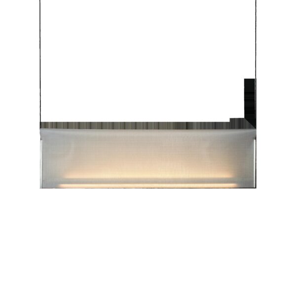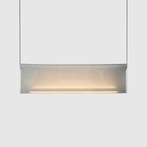 Nebra captures the rising summer sun through a fine veil of mist. A light that harkens back to the Atlantic dawn at a time when the first mists herald the autumn to come. A horizontal glow like the line of the horizon that becomes nebulous as it rises, producing a vaporous, ethereal atmosphere. This hanging design is a linear piece with horizontal proportions that combines two types of lighting: direct lighting that projects down from above and a second indirect ambient lighting that is subdued and suggestive. The light emitted across its surface gives Nebra a weightless appearance, a stark contrast with the expressive sobriety of the piece when turned off. It is made from a sequence of pieces of consistent height and variable length, making it flexible and easy to combine in a series.