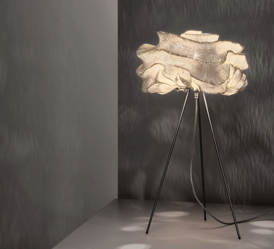 A collection that reflects better than any other the extreme malleability of the painted stainless steel mesh. The unrepeatable organic shapes of the small Nevo pendant lamp by Arturo Álvarez, with its handcrafted curves, make each lamp a unique design, different from the rest. Its volumes seem to be alive, in constant evolution and movement, due to its shape and the folds in which the light plays. It is one of the firm’s largest collections, which includes pendant, floor and wall lamps, and even cascading chandeliers.