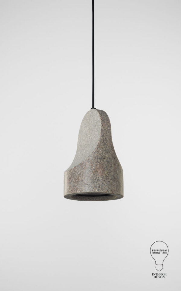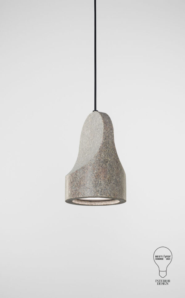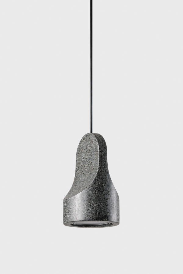 Stone and light, two opposing elements that Parga unites in the search for an almost fictional image. The energy contained within a mineral seeks to be released and radiate out in an intense beam of direct light. Parga is a collection that goes back to using granite for functional and decorative in indoor spaces, taking advantage of its neutral color palette and natural texture. This lamp is made from three pieces of different heights and diameters, each with a formal language reminiscent of the most primitive and rudimentary stone carvings. The material used is discarded pieces of granite mined from Galician quarries, making for a more sustainable use of materials. The granite forming Parga is compact, light gray in color and uniform with specks of black and fine grain.