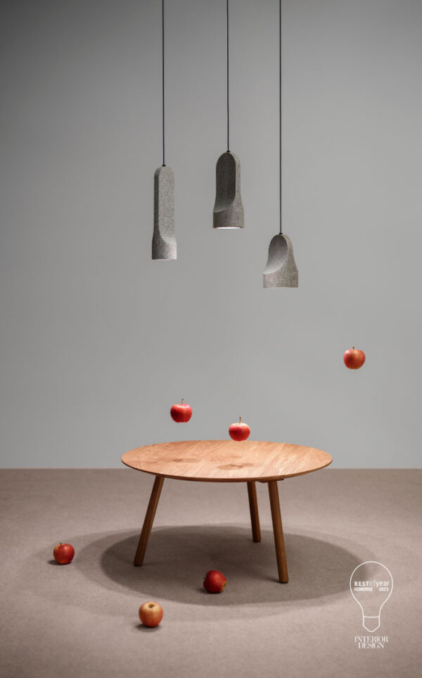 Stone and light, two opposing elements that Parga unites in the search for an almost fictional image. The energy contained within a mineral seeks to be released and radiate out in an intense beam of direct light. Parga is a collection that goes back to using granite for functional and decorative in indoor spaces, taking advantage of its neutral color palette and natural texture. This lamp is made from three pieces of different heights and diameters, each with a formal language reminiscent of the most primitive and rudimentary stone carvings. The material used is discarded pieces of granite mined from Galician quarries, making for a more sustainable use of materials. The granite forming Parga is compact, light gray in color and uniform with specks of black and fine grain.