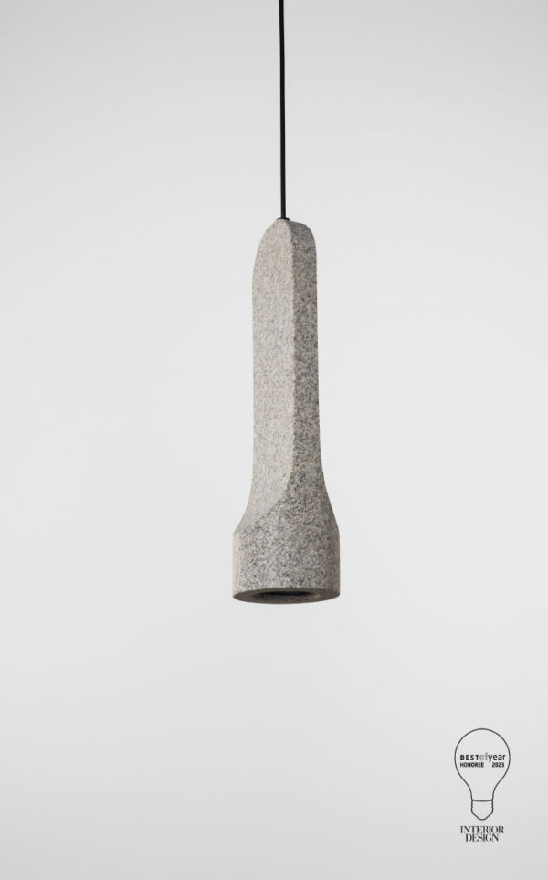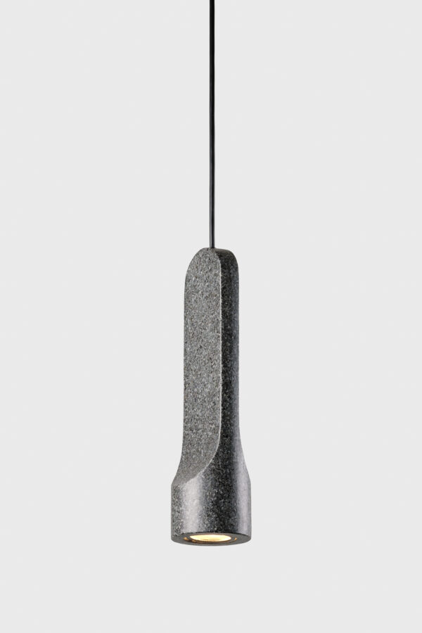 Stone and light, two opposing elements that Parga unites in the search for an almost fictional image. The energy contained within a mineral seeks to be released and radiate out in an intense beam of direct light. Parga is a collection that goes back to using granite for functional and decorative in indoor spaces, taking advantage of its neutral color palette and natural texture. This lamp is made from three pieces of different heights and diameters, each with a formal language reminiscent of the most primitive and rudimentary stone carvings. The material used is discarded pieces of granite mined from Galician quarries, making for a more sustainable use of materials. The granite forming Parga is compact, light gray in color and uniform with specks of black and fine grain.