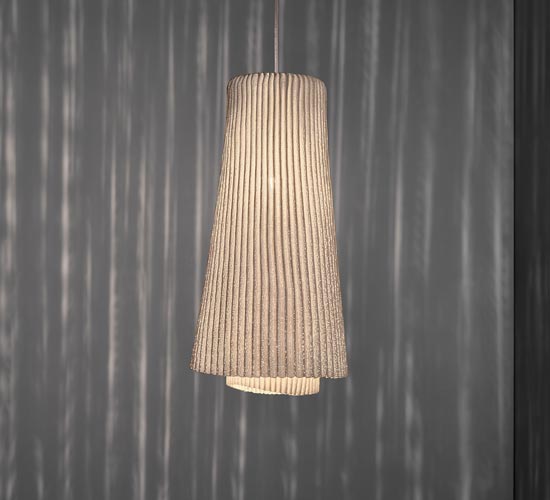 Tempo Andante is a pendant lamp from the collection with the same name designed by Arturo Álvarez. Made of painted stainless steel mesh, it is handmade in Spain. This material, crafted in fine pleats, forms two overlapped layers that create two different lamps full of dynamism.Andante and Vivace ,two liveliness shapes born from one. The representation of two instants generated by the same movement at a different tempo.
