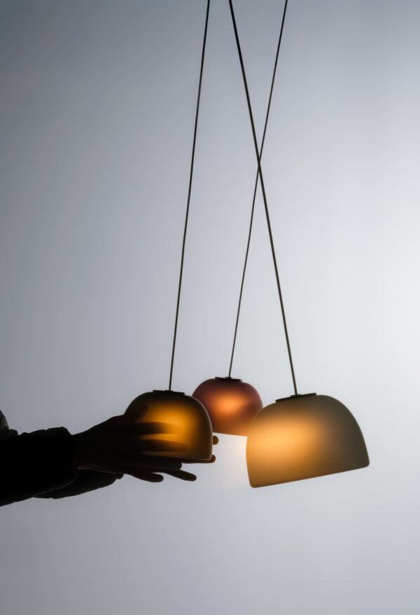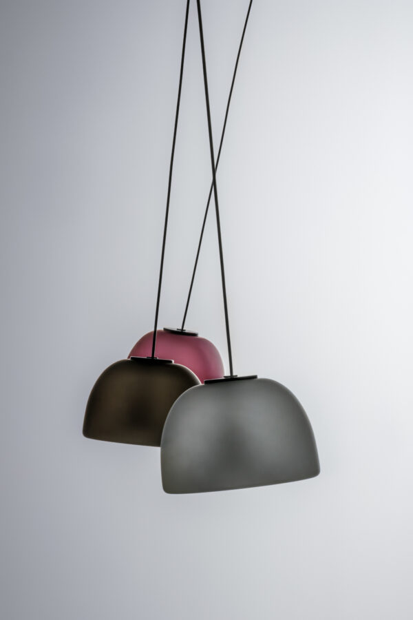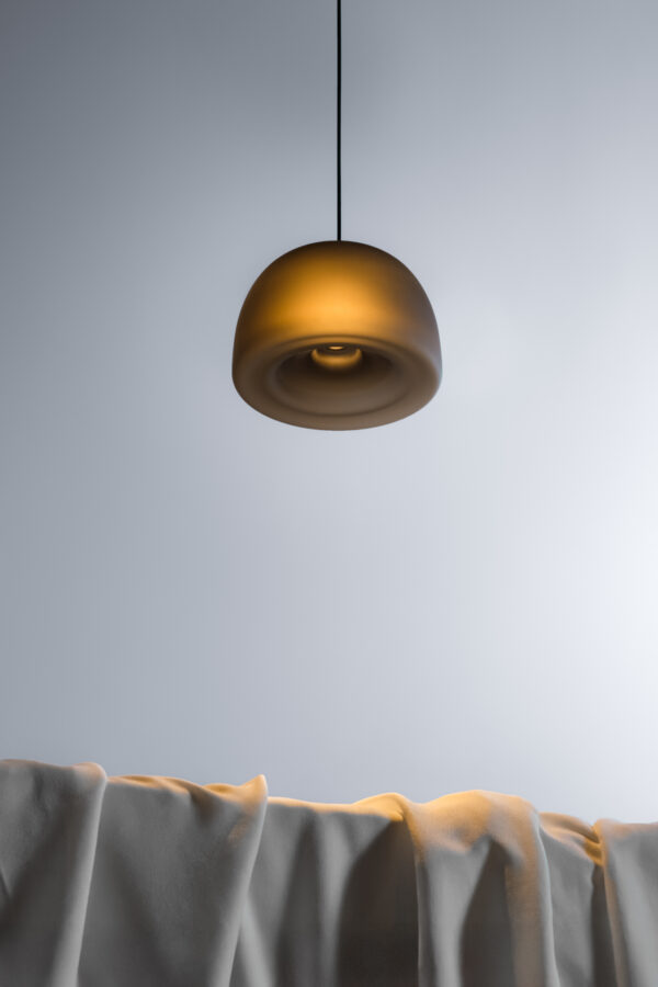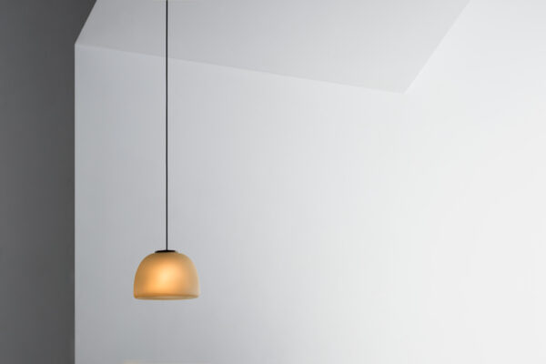 Veiga, designed by Isaac Piñero, is a discreet lamp that harmonises light, colour and form with its surroundings. This pendant luminaire offers a point light with excellent luminous qualities, despite the small size of the LED source. Its curved shape and wave-shaped lower cavity create a halo of light that creates a sense of lightness.