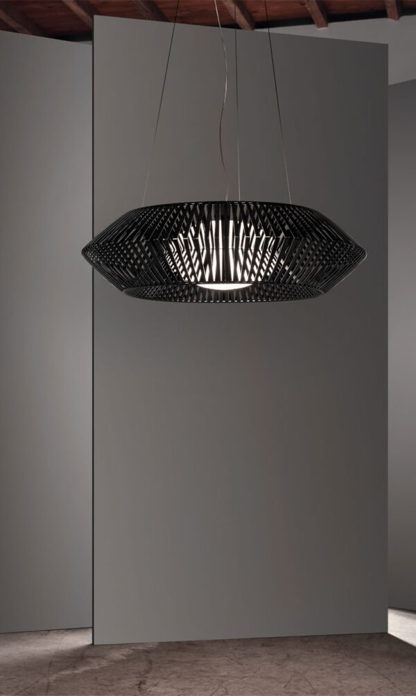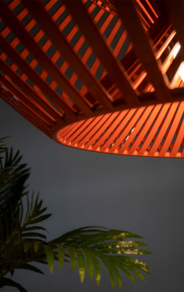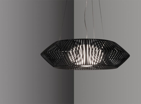 This lamp was designed by Héctor Serrano. A spatial form, but close and possible, that excites us and with which we identify, through the extraordinary and fantastic. By means of plastic injection technology, a family of luminaires is achieved that through its slats, combined in a geometric way, submerge us in a dreamlike world. V grande is a handmade pendant lamp that allows a high customization of color.