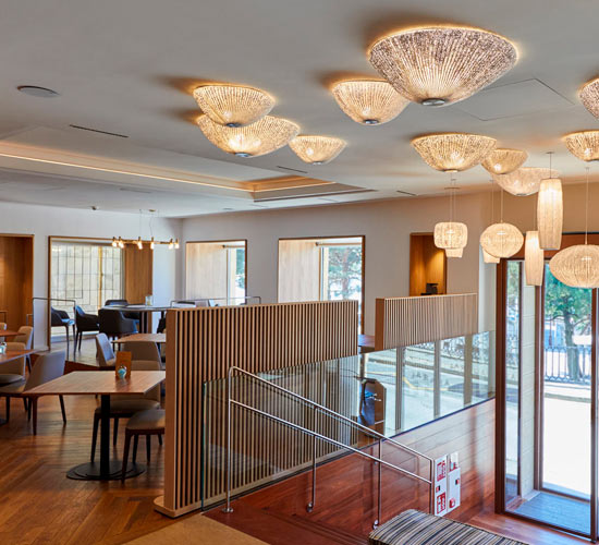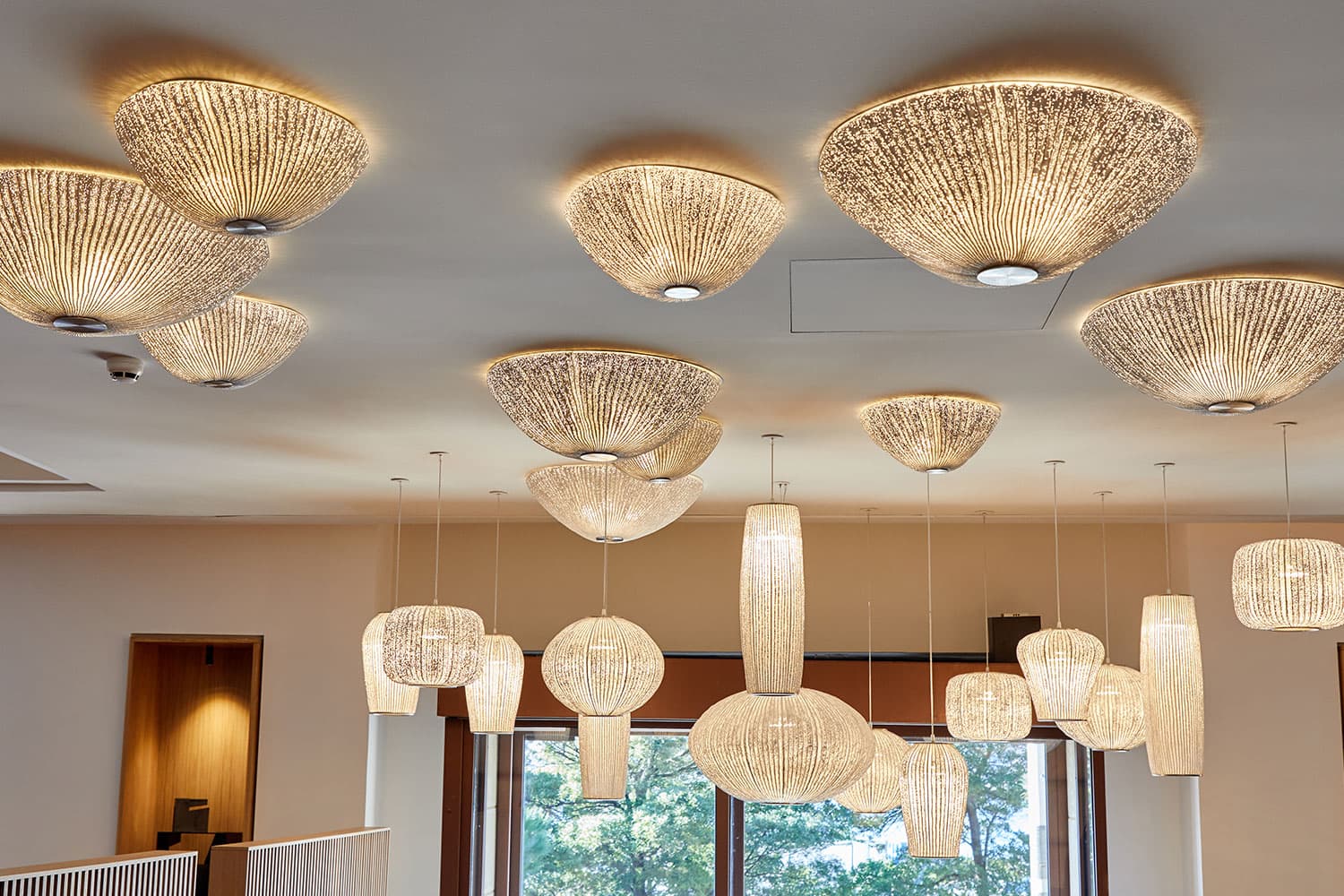 Luisa López Telleira ha sido la encargada de reformar el Hotel Lasala – San Sebastian. Este espacio con vistas al mar, está iluminado por diseños de Arturo Álvarez. En el hall, Onn en plafón y la familia Coral, forman una gran composición con fuerte identidad marina. La unión de estos dos modelos en una composición a medida, acoge y guía a los visitantes y huéspedes en la entrada.
