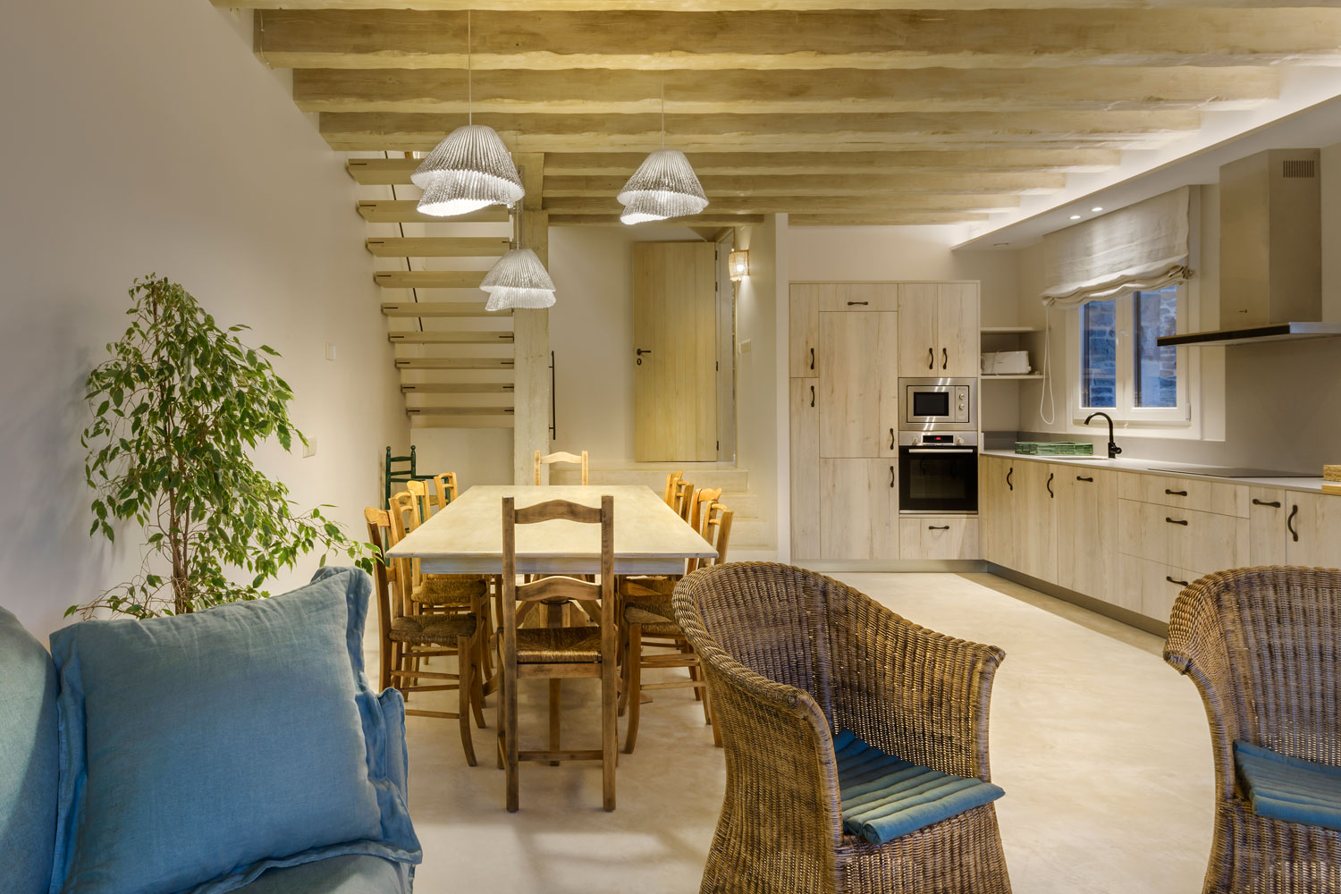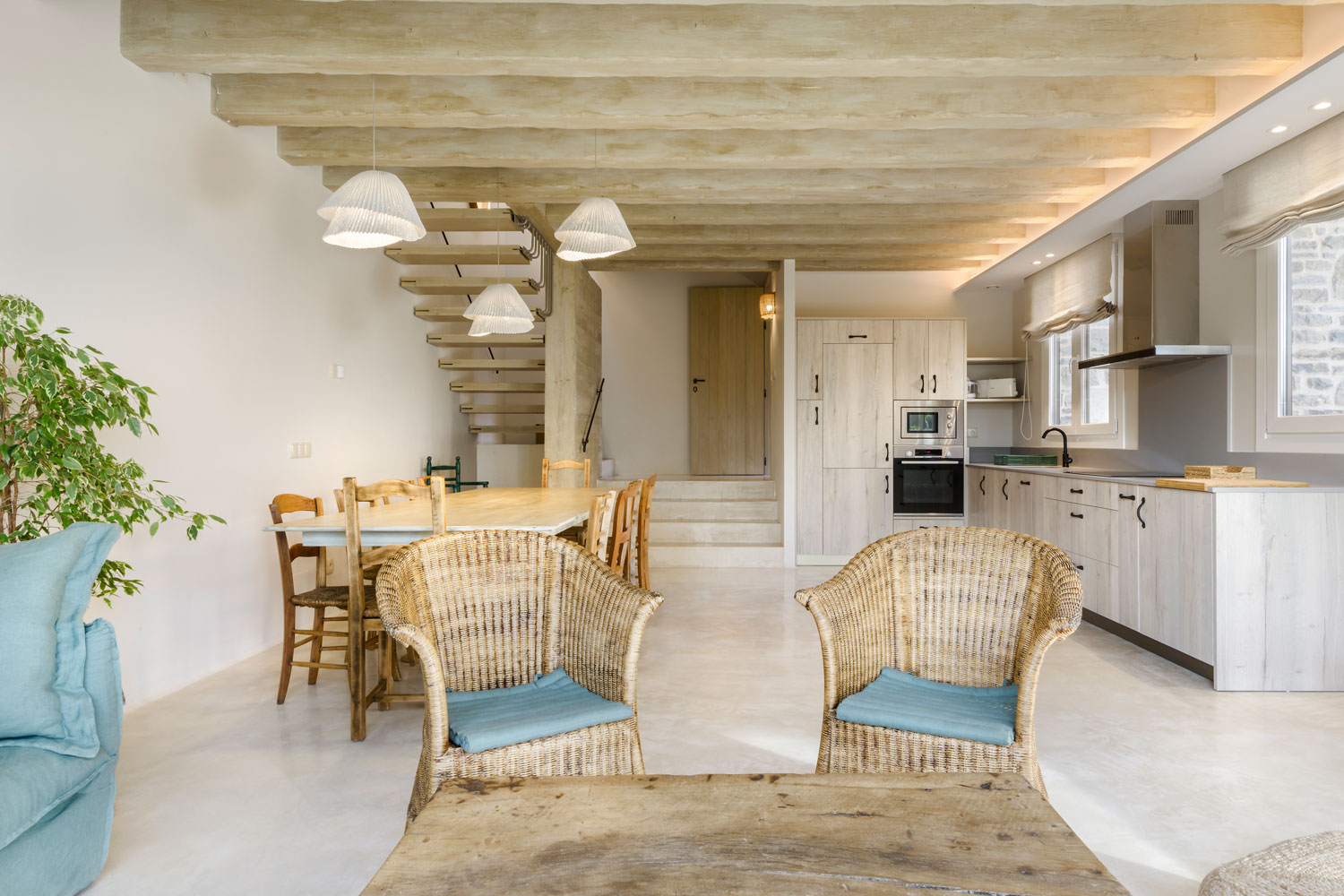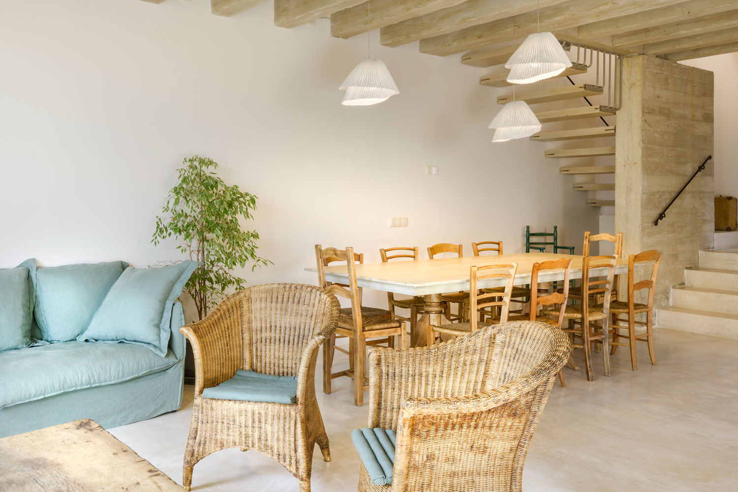 Calm, simplicity and nature. This rural house located in Jaca, Spain has been restored by Marie-Claude Tourillon. In the dining area, Tempo Vivace blends in with wood to give a warm touch to the meal.