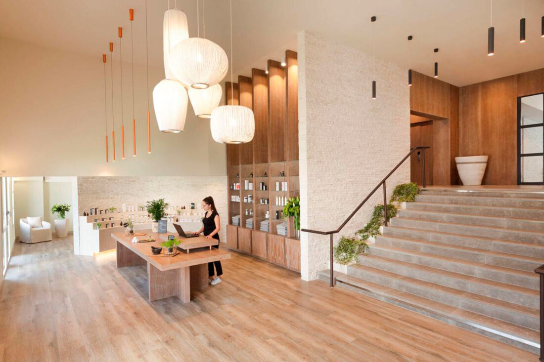 The Coral composition of pendant lights illuminates the entrance to the spa of the prestigious Hyatt Regency Chantilly Hotel in France.