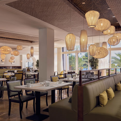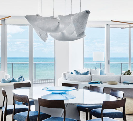 The Coral collection is brought together in the hall of this hotel in the form of a large composition of pendant lamps.