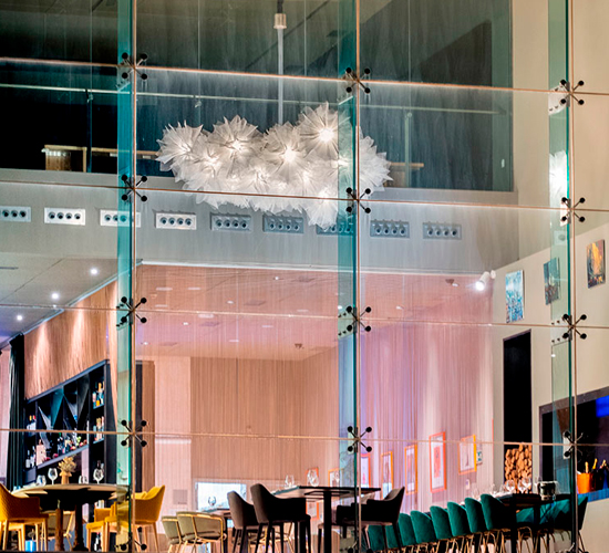 A Barra is a project in which a product has been developed to suit the totally personalised space. Joselitas is born, an architectural pendant lamp made of glass.