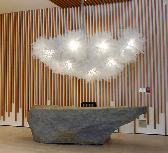 La composición más grande diseñada por Arturo Álvarez, Fluo, ilumina el hall del edificio One Quito.
