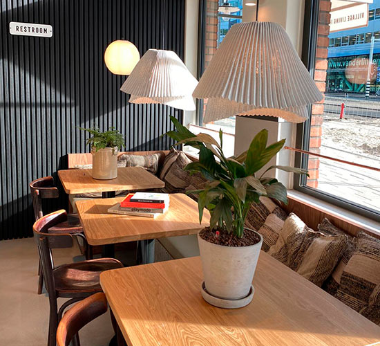 The Samaná restaurant in A Coruña has been designed by Mas arquitectura. In the dining room our Tati large hanging lamp design is placed. The handmade lamp shines in Samaná.