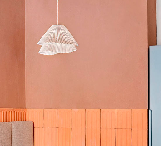 Nuestra lámpara colgante Tempo Vivace luce sobre las mesas de este restaurante italiano diseñado por Cristina Celestino.